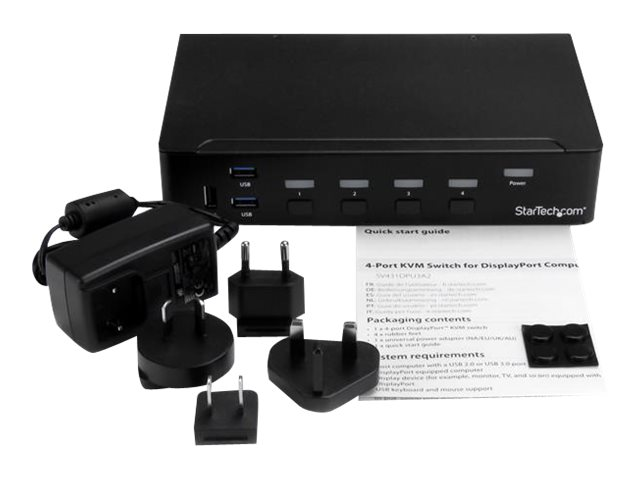 DP KVM Switch with Audio and Built-in USB 3.0 Hub for Peripherals - 4K 30Hz (SV431DPU3A2) - KVM / lyd / USB-svitsj - 4 x KVM/lyd/USB + 3 x SuperSpeed USB - 1 lokalbruker - rackmonterbar - AC 120/230 V / DC 9 - 12 V - for P/N: SV431RACK